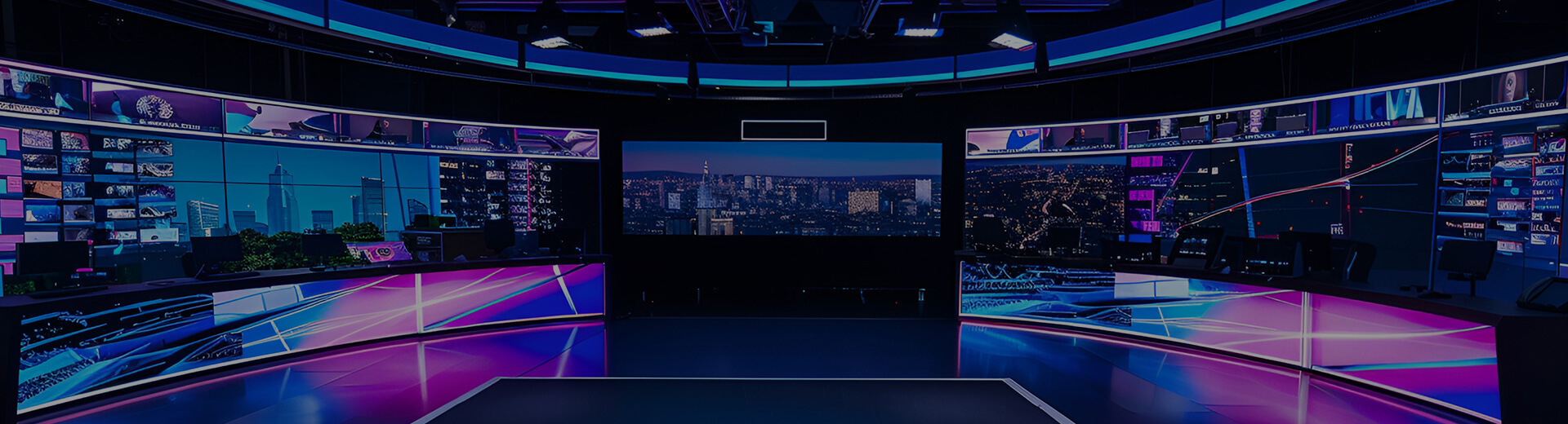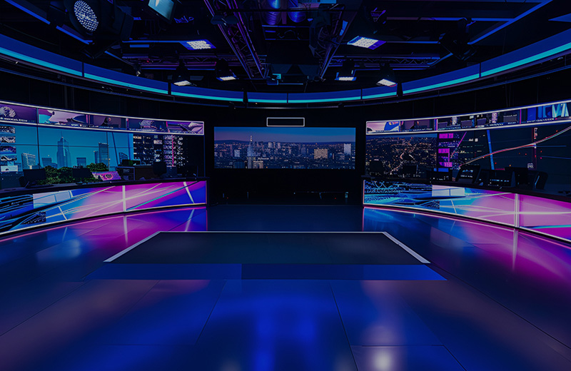 The full media broadcasting and television studio solution uses high-definition LED display screens as the content presentation carrier, integrating virtual and real integration, virtual implantation, large screen packaging, online packaging, integrated media access, streaming media push, data visualization, etc. It has achieved a qualitative leap in creating program atmosphere, enhancing momentum, diversifying information presentation, strengthening on-site hosting connections, and audience interaction, greatly enhancing information interactivity and selectivity, providing viewers with a strong visual shock effect, and bringing a new revolution to program expression forms.